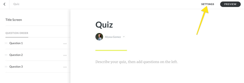 And you can find the quiz settings page by clicking the Settings button at the top of the quiz in edit mode.