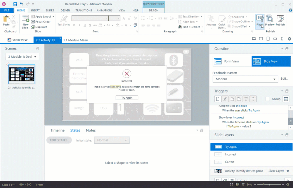 In Storyline 360, when using the Modern Player, you can have a seekbar without the play/pause button: