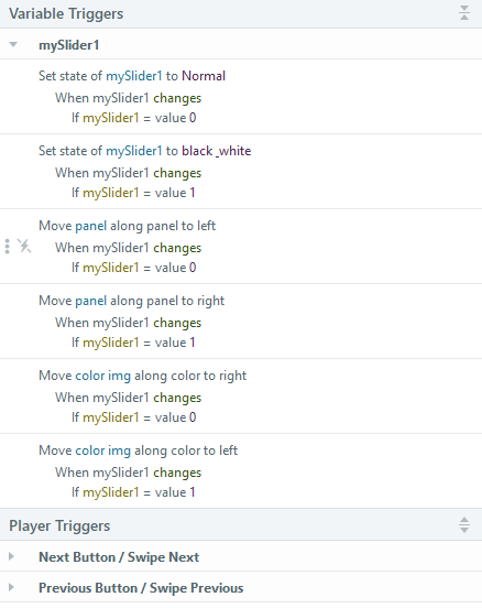 -2nd trigger: Move “Panel” along Motion Path (to the right) when the Motion Path ( to the right) of “Panel” ends IF Right Button status is pressed.