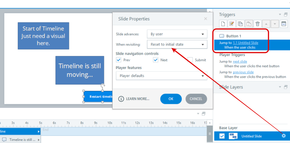 But I can not seem to make a trigger that resets the timeline for the baseslide. (just a restart button)