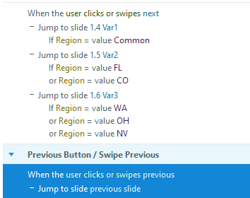 I'm having a weird issue where I have an If/Or trigger that determines which slide to move to. It includes multiple If and Or statements that check against a variable. Take a look at the 2 ...