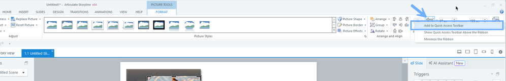 Also, I would like to highlight the Quick Access Toolbar, which allows authors to pin certain editing tools directly below the main ribbon. For example, the freehand Crop tool can be added to the Quick Access Toolbar by right-clicking Crop, and selecting 'Add to Quick Access Toolbar'.