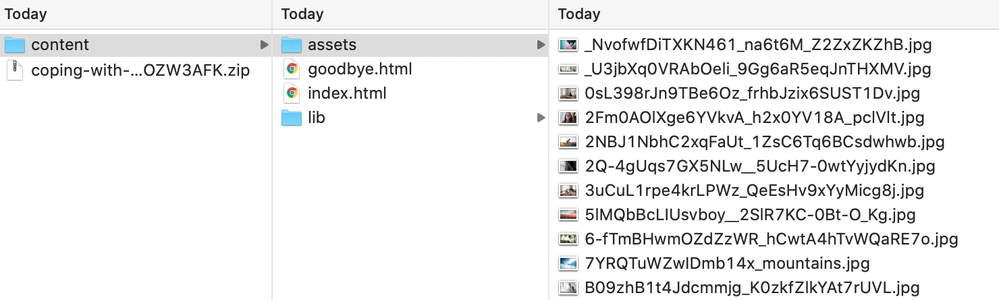 Open the zipped output folder, and you'll find another folder called "assets." All of the image files can be found inside that folder.