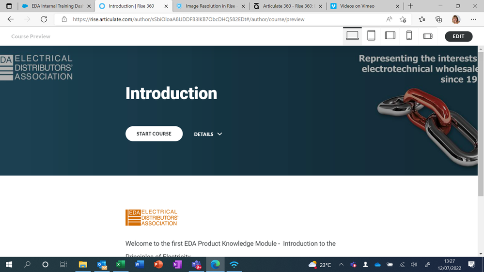 Hi All, I have a similar issue with the banner image on a course. The image I have loaded is being cut-off, so not resizing to fit the space (see below). What dimensions should I be giving to the designer to create something that will fit.