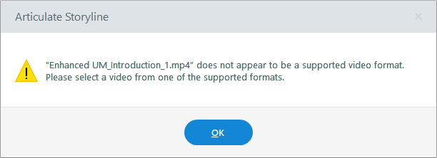 This thread was started 7 years ago and people are still having the same issue. What's the deal? I'm running into the problem as well. I have a MP4 file that is 734MB and getting and error the others have received. I have uploaded bigger MP4 files previously without issue. What's the fix? Is it something to do with the rendering? I exported my video from Premiere Pro and used Adobe Media Encoder to render to MP4 format. Used this process before with no issue importing into storyline. Now I'm getting an error. Has this been looked into? Is there an answer?