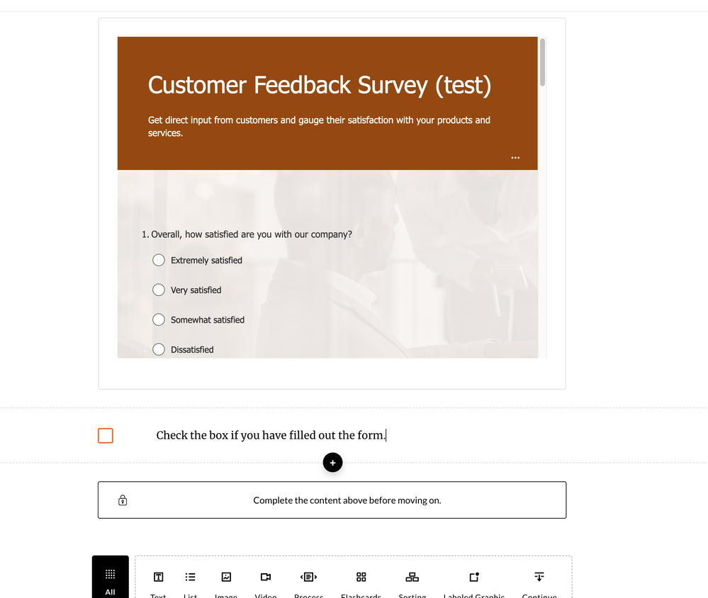 We also have a feature request for a survey or form-type of block to be added in Rise. I'll add this post to our request and update this thread as soon as I hear more from our team about this feature.
