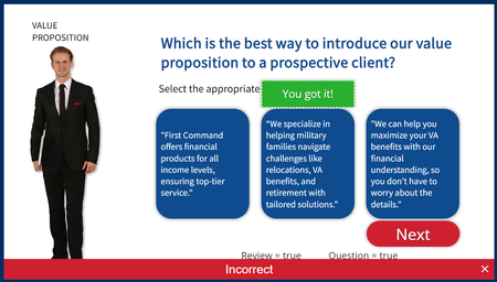 I created an assessment in Storyline 360 that includes 4 questions. At the end of the assessment is the Results slide. If you don't pass, the Results slide shows the "Incorrect" layer with "Retry" an...