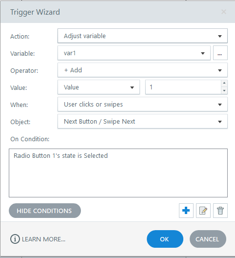 I made you a screenrecording with the actions I did to give the radiobutton this trigger.