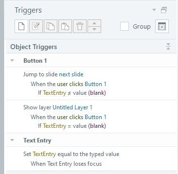 These triggers will ensure that the user is either directed to the layer if they didn't enter a value or to the next slide if they did.