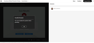 You have a submit button turned on in the player. Submit is only for a quiz question, but what is in your screenshot is the quiz result slide. If what you want is a button to close the course, you will need to add a button to the results slide and add a trigger to it to exit the course.