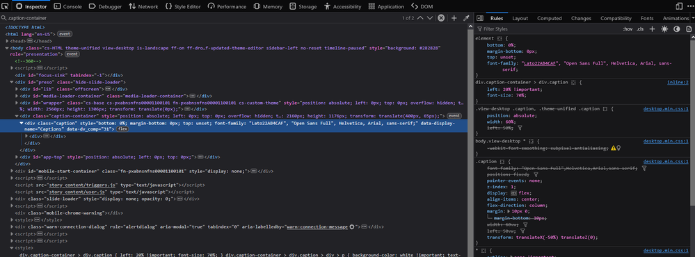 <style> div.caption-container > div.caption { left: 20% !important; font-size: 75%; } </style>will make the text tiny & move the box towards the bottom left.