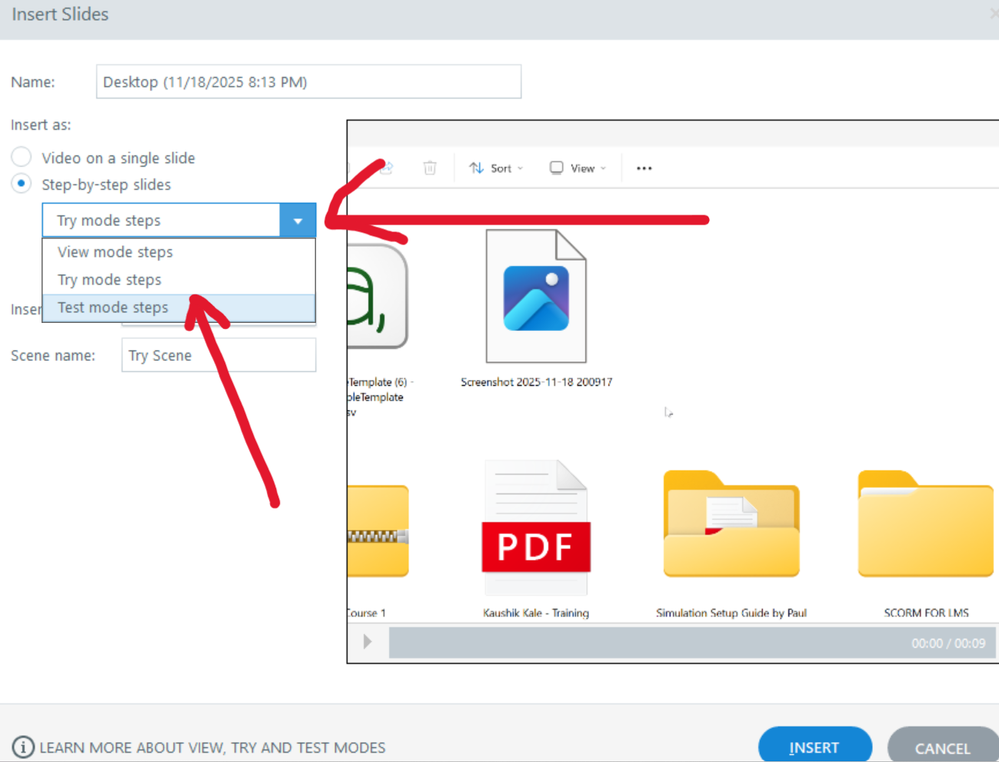 I have recorded an activity by screen recording and while converting or saving the file, chose the option 'Guide Mode'. But now since I have worked upon this file, I want the same file to become the Test Mode option. Please help me experts!