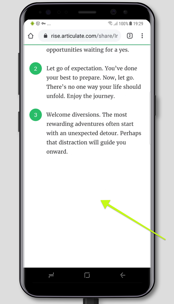 • Hi there! Thanks so much for letting us know what's going on. I tested a sample course in Chrome on an Android device, and I didn't have any issues seeing the final attachment block in a lesson.