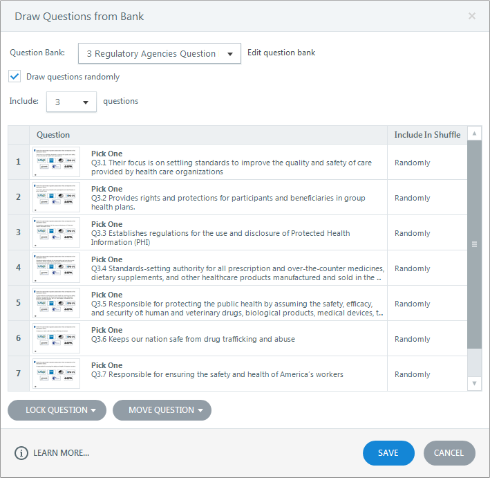 Not sure if I am doing this right. I have a question bank with total of 8 questions. I would like to be able to draw 3 questions randomly from the question bank every time. I have the "Draw question randomly" checked, and also selected "3" from the "Include # questions" drop-down menu. But somehow the questions that appear were always the same. Any suggestions are welcome. Thanks in advance.