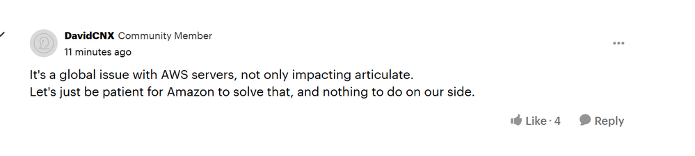 Our engineers are working closely with the provider to get everything running smoothly again. You can find the most recent details on our Articulate Status page.