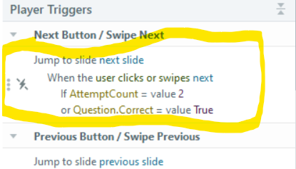 I could also adjust the trigger to work when the users click "continue" to close the feedback slide layer, perhaps.