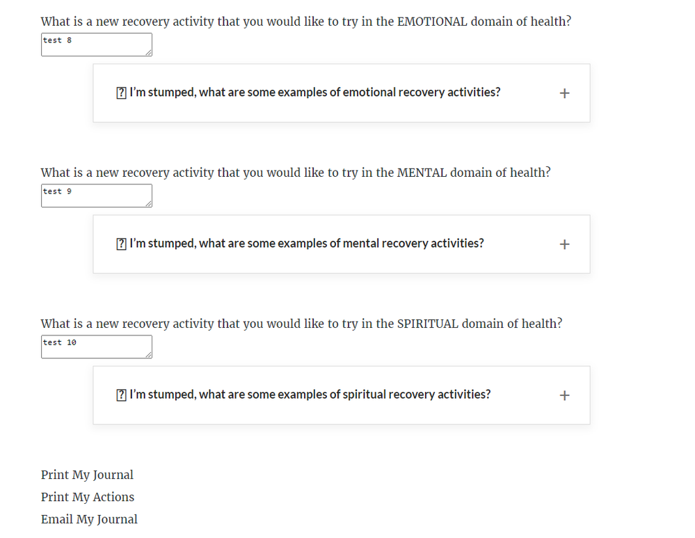 The Learning Journal allows the learner to enter text responses to journal prompts throughout a Rise course. At the end of the course, the learner can print their learning journal of all their responses. The responses are saved to the browser so that they persist on future visits to the Rise course.