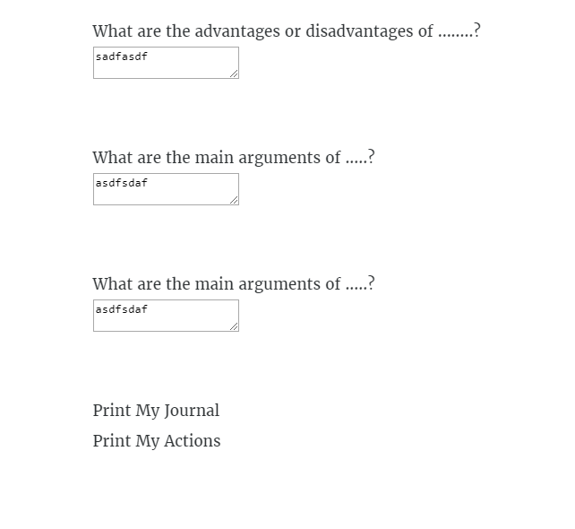 The Learning Journal allows the learner to enter text responses to journal prompts throughout a Rise course. At the end of the course, the learner can print their learning journal of all their responses. The responses are saved to the browser so that they persist on future visits to the Rise course.
