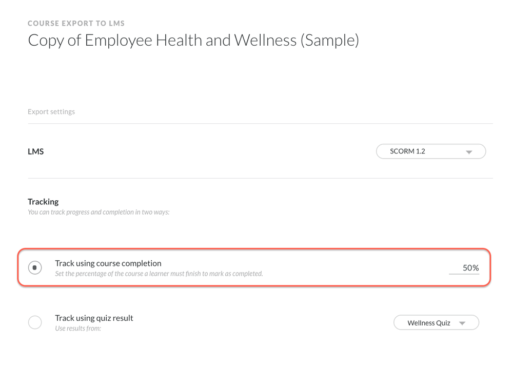 For LMS tracking, use the tracking option “Track using course completion.” Set your completion percentage at the minimum percent your learners need to view to complete one part of the course. For example, if your course is in two equal parts, you may want to use 50% as the completion percentage.I'm looking forward to seeing what other ideas the community has for you!