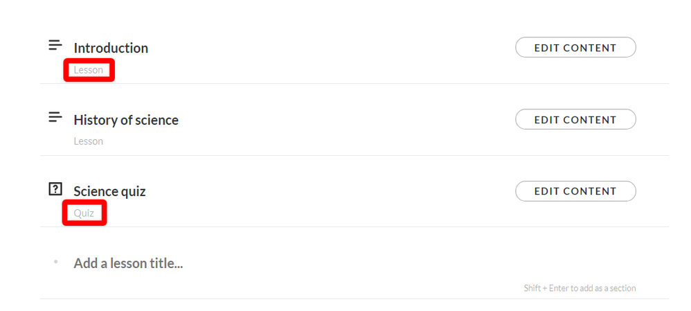 Hi Daniel, thanks for reaching out. The word lesson under the lesson title is an indicator to show that the lesson is using learning blocks and is not a quiz lesson.
