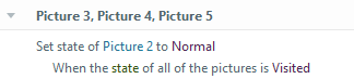 - That prevents the icon from showing. Pictures 2, 3, 4, and 5 will never all be Visited, because Picture 2 goes back to Normal as soon as Pictures 3, 4, and 5 are visited.