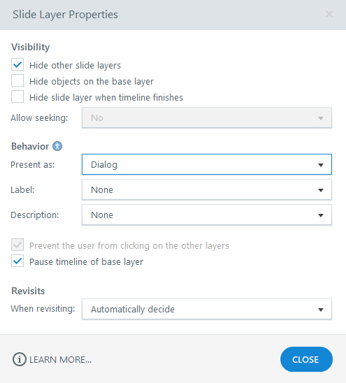 If you don't like that appearance but do want to present content in a modal, put the content on a layer, and set the "Present as" Slide Layer Properties to "Dialog."