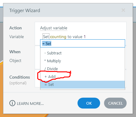 - Add a trigger(s) to prevent further clicking when the variable changes with the condition that the variable has reached the limit you want to set.