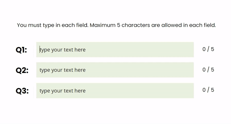 Would you mind moving this to a new topic, such as 'Multiple Text Entry Fields with a Real-time Counter'? This way, others looking for a similar solution can find it more easily and avoid confusion. This thread has become a bit unclear, as the codes shared are for different scenarios and not directly related to the original inquiry. I’ll post a new solution and update the code for you shortly. - Nedim11 months agoCommunity Member