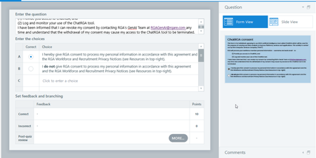 I'd like Completion to be marked by slides viewed and the MC question to just report to the LMS; the question is not tied to completion.