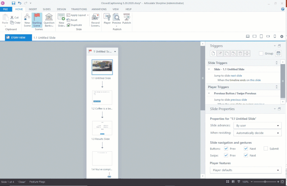 When I copy the scene with my Spanish slides from Spanish.story into MultiLanguage.story, it not only doesn’t copy in the renamed variables, the Spanish slides are using the original English variables.