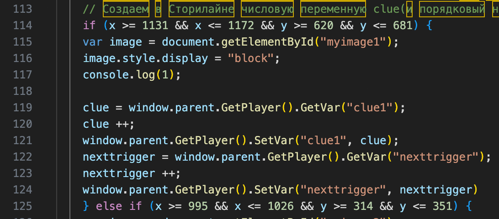 Here we specify the range of coordinates for the X and Y where the violation is located. When clicking on a violation, we pass this information to Storyline.