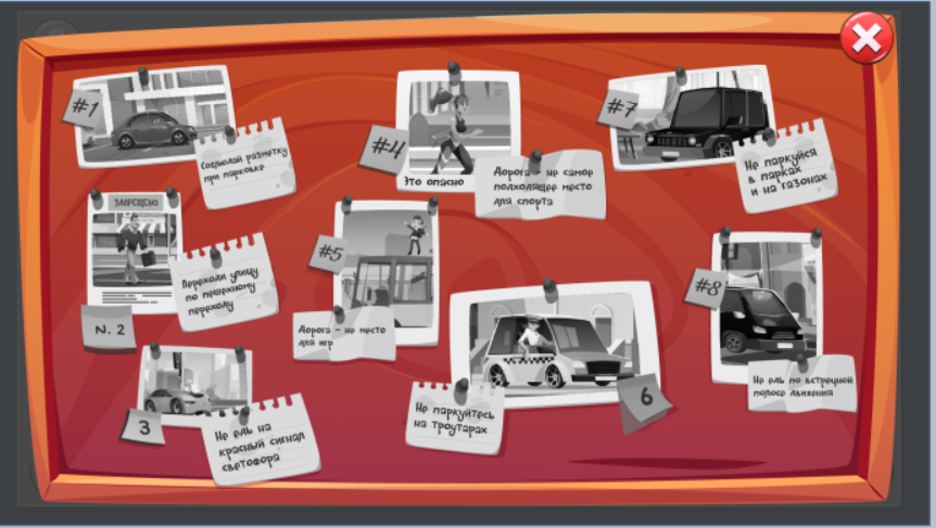 Now we need to ensure that initially there are no photos of violations on the board, and when a violation is found, the photo appears with some animation.