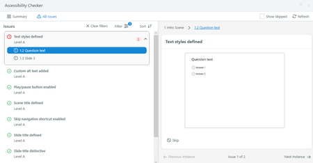 In an old project file, in the feedback master I have a continue button which I can only get to pass by adding a heading style. Adding a new button comes in with Normal but still fails. I've opened a support case as you suggest.