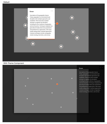 This was a theme component I created that moves the popover way to the right into more of a sidebar, and also decreases the size of the markers, and removed marker icons entirely.