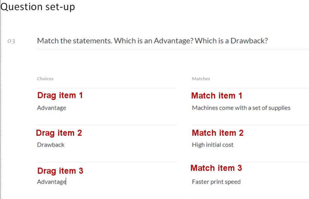 Advantage #1 (see below) must be dropped only on Match #1 to be marked as correct. The same is true for Advantage #3 and Match #3.