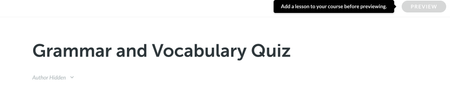The screenshot you see showing the message "Add a lesson to your course before previewing" refers to a Quiz inside of a course with many lessons ready and full of content and media.