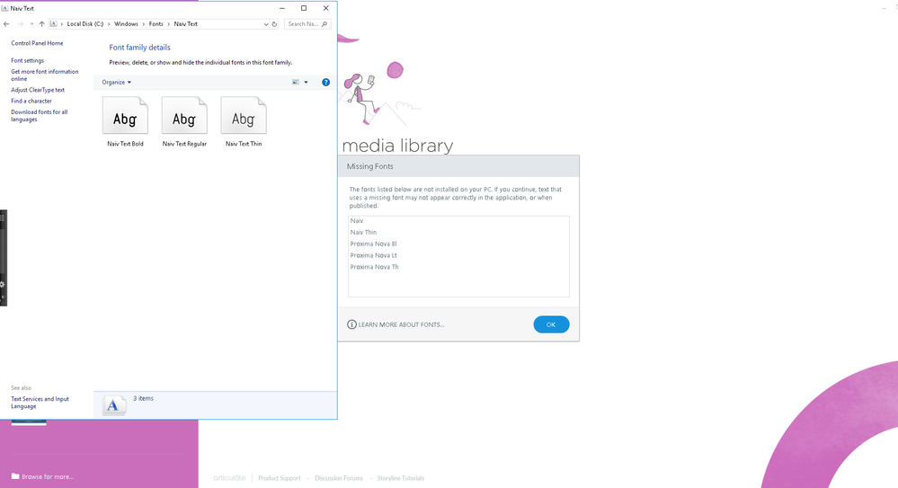 Missing Fonts (according to Storyline) but Fonts Exist in System