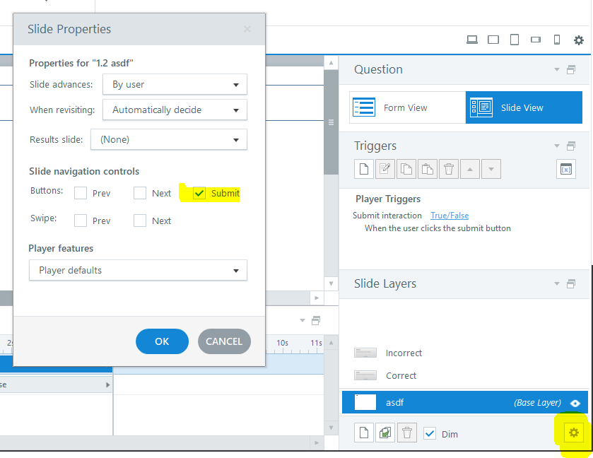 I have just converted an older SL1 into SL3 - something I've done before - but this time, the SUBMIT button is missing from the slides. The SUBMIT box has been selected on the Base Slide, but it just doesn't show when I preview the presentation or when it's in the LMS.