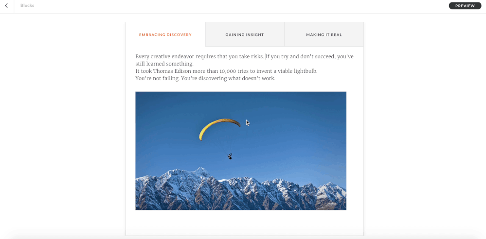 We would also want to use buttons to link to other lessons within the course. Tabs are an extremely useful way to separate similar ideas, so we're looking to use them to the best of our ability.
