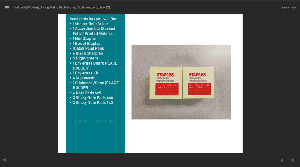 This is new for me. I have a rectangle with three bulleted phrases. The motion path moves the rectangle, but leaves the text behind.