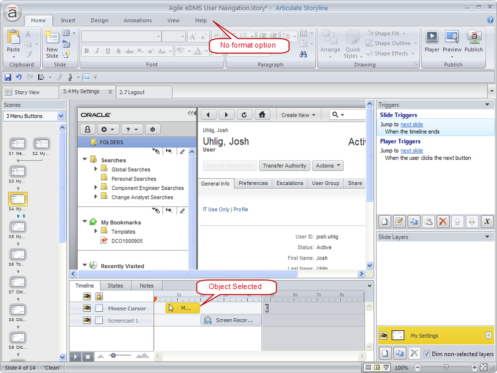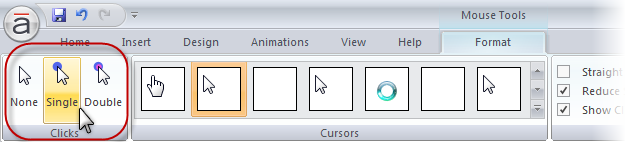 When you include a screen recording in your Articulate Storyline project that has click-and-drag events (such as dragging a scroll bar), note that these actions won't be interactive if you insert your screen recording as Try Mode Steps or Test Mode Steps. (Other types of actions, such as clicking and typing are interactive, so you'll be able to test learners on these actions.) As such, you won't have the same mouse formatting options, and the workaround that you mentioned is one method around this, and I've seen another user suggest the following: