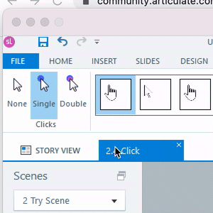 The issue is that the "Single click" sounds like a double in my mind. I know how to select None, single and double. I know going forward what a Single click sounds like with Articulate. Thanks so much for your reply.