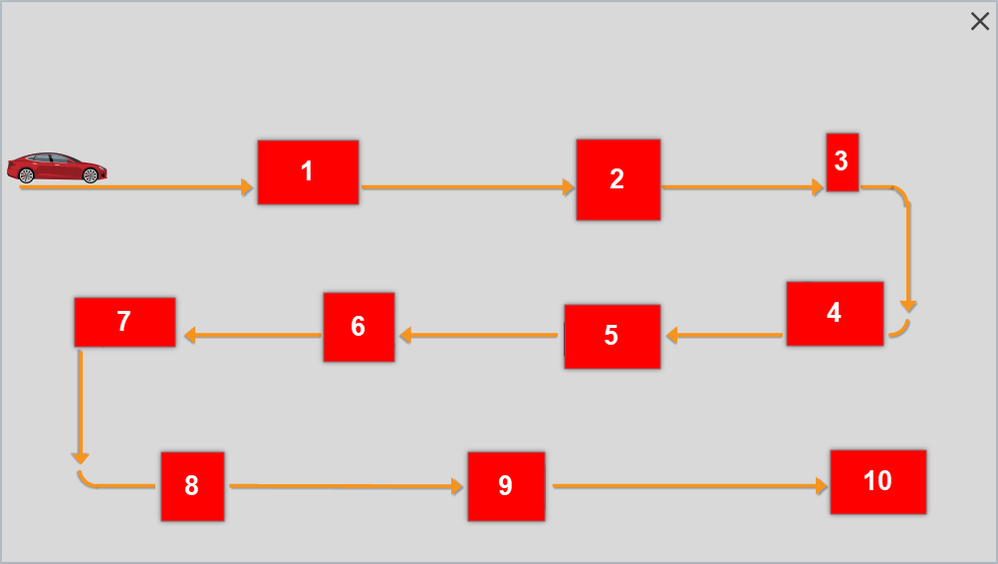 Example using the motion paths as I numbered them. Wherever the car is, you want to move it to 10. 10 is clicked. Layer 10 is shown. Triggers are;'