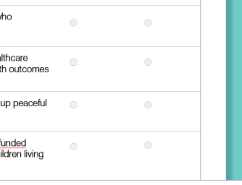 Then once I select a "Submit" button I need a "Correct - Incorrect" label to appear at each row (I can figure this out with trigers and variables I think).