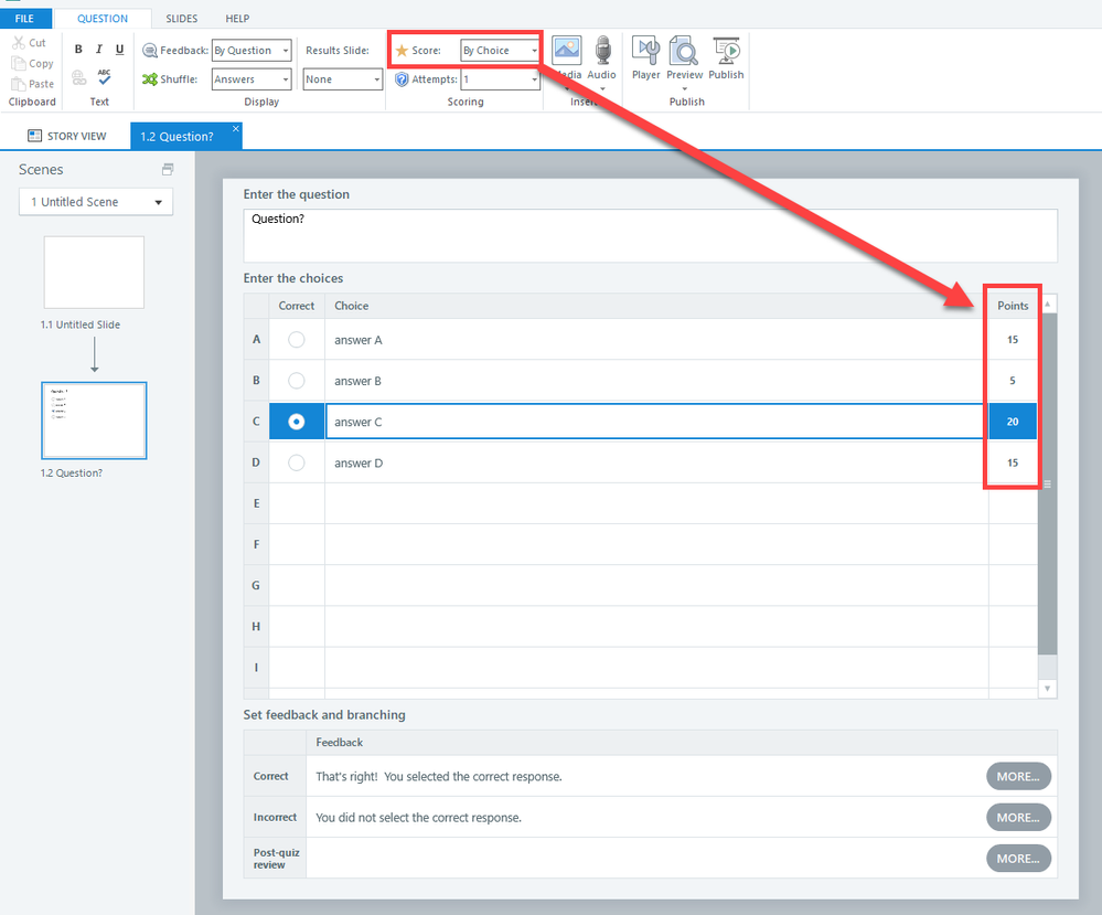 Note: You still have to designate one of the answers as correct. For example, in the image above, the correct answer is the one with the highest point value.