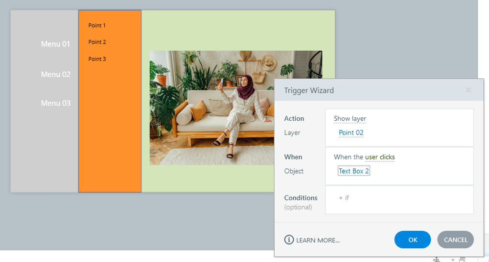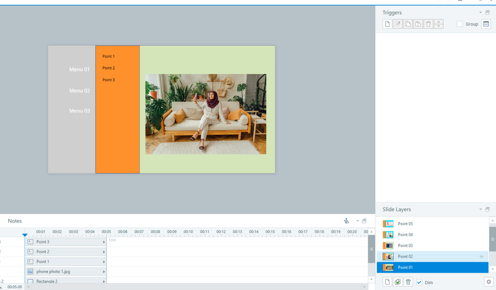 When you have the Point 1 layer active, there are no assigned triggers to display both the Point 2 and Point 3 layers. Please see the screenshot here: