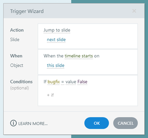 My colleague and I have recently come across a strange bug (separate SL modules). On a project I am working on of about 30 slides, on two of the slide a mystery trigger has appeared "Jump to next sl...