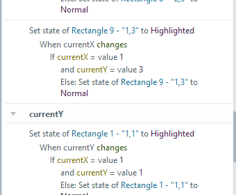 The remaining triggers, two per button, control the highlight in response to the values of currentX and currentY.