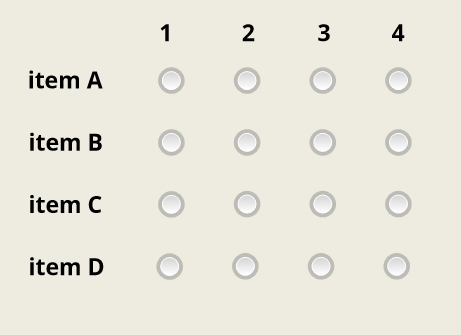 Of course, you'd also have to add triggers to ensure that the user doesn't use the same ranking for more than one item. But that's easier to do with checkboxes than it is with the dropdowns in a ranking survey question.