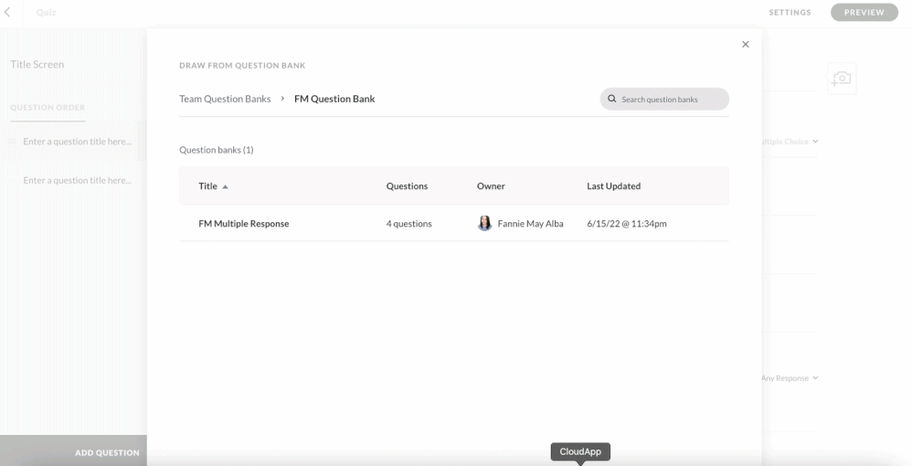 From there, create and add questions to the bank just as you would when building a quiz lesson.